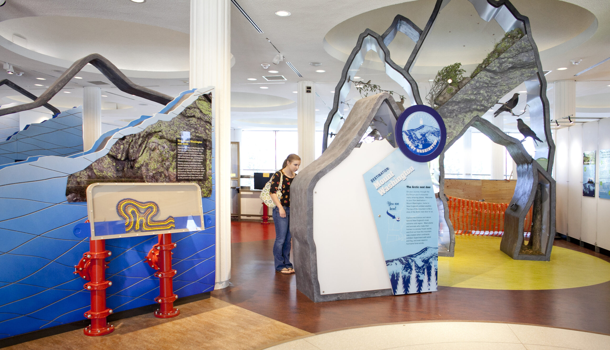 The first installation of a phased master plan, The Arctic Next Door transforms climate and extreme weather into lived experience. Visitors step into a hurricane, climb simulated Mount Washington granite, guide wind toward turning turbines, breathe the scent of alpine herbariums, and trace distant landscapes through scopes and motion. Learning unfolds through movement, sensation, and play. The exhibition is organized as a constellation of flexible “rooms,” allowing themes to evolve while the underlying design remains constant—an adaptive environment where curiosity, science, and changing climate stories meet.